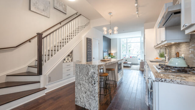 Coveted End Unit Executive Townhome In The Heart Of The Beach Across From Kew Gardens Steps From The Lake, Boardwalk & Transit! 3 Floors Approx 2002 Sq Ft Loaded With Luxury, Spacious Rooms & Expansive Ceilings Feat; Gorgeous Kitchen With Granite Waterfall Island, B/I Top End Appliances & Ample Custom Storage From Cali Closets. W/O From Family Rm To 2 Level Private Terrace Feat Low Maint Trex Deck That Fits A Hot Tub & Surrounded By Greenery. Ensuite Baths In All 3 Beds, Custom California Closets Murphy Bed + Cabinets In 3rd Bed. Stunning & Spacious 3rd Floor Principle Retreat With W/I Closet, 5Pc Bath Plus Your Own Private Terrace & Work Space. Floor To Ceiling Windows & Hardwood Flrs Throughout. Top It All Off With Extra Large Storage Unit & Parking, Amenities Incl Dog Spa, Gym, Party Rm +++ Your New Beach Lifestyle Is Calling!