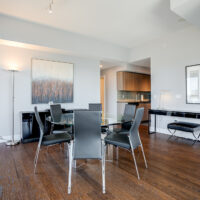 Welcome to lakeside living! This beautiful corner unit in the landmark award winning Zeidler architects Eau De Soleil development boasts remarkable lake views, wrap around terrace & epic sunsets! The split bedroom layout is perfect for young families, downsizers or work from home scenarios. The abundance of light from floor to ceiling windows creates an ambiance like to other & the stunning views of lake Ontario bring balance & harmony to living. This immaculate suite shows like brand new with no wear & tear. Feature incl upgraded Engineered hardwood floors, Beautiful kicthen cabinets with dark granite counters & glass tile backsplash. Primary bed contains a huge double closet, 3 pc en-suite & a walk-out to wrap around terrace feat stunning lake views. More living space than your typical condo as the LR & DR are combined & can accomodate different arrangements depending on your needs (combined irregular space is approx 17feet wide by 22 feet long). A quick Walk To TTC & across from soon-to-be-built Park Lawn GO Station. Groceries, shopping and dining all close by. World Class amenities including Indoor Pool & hot tub, fully equipped Gym, Yoga/Exercise room, theratre room, party meeting room, rooftop terrace, dog washing station, 24 hour concierge + secure FOB Only elevator access, visitor parking plus owned parking and locker!