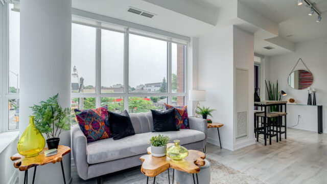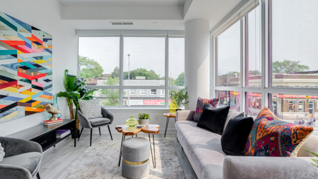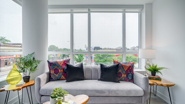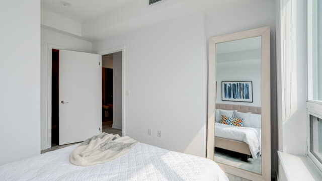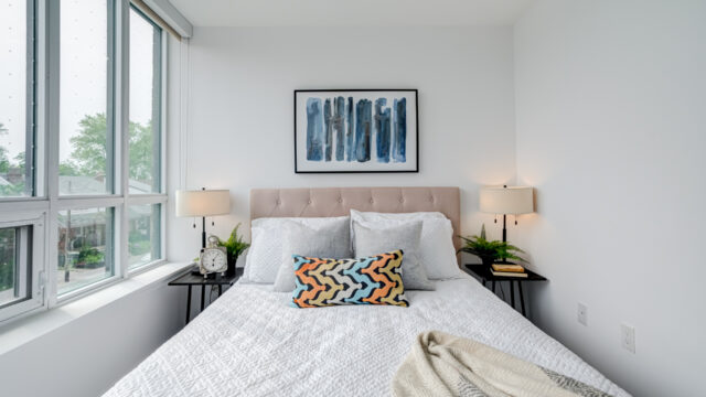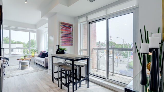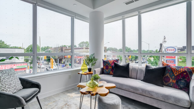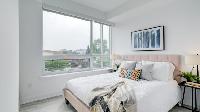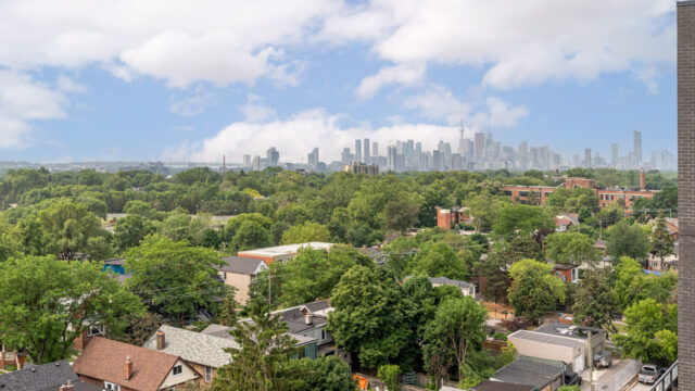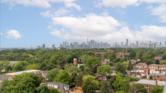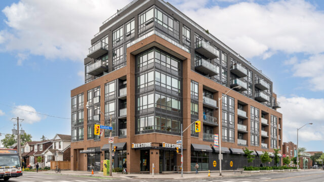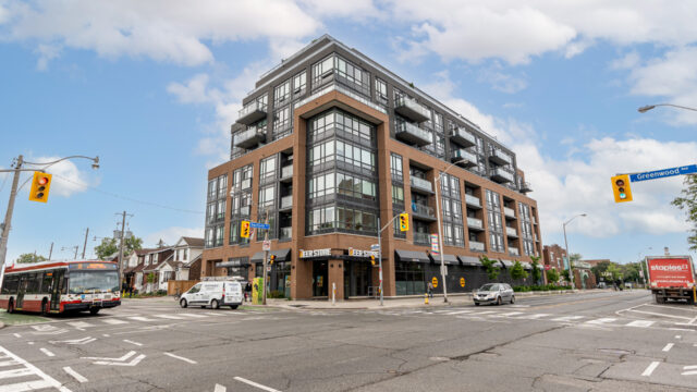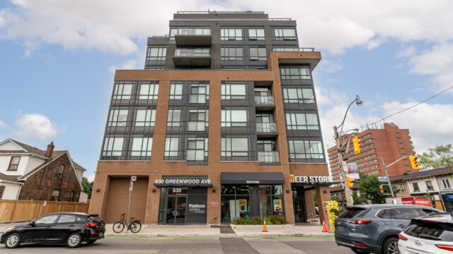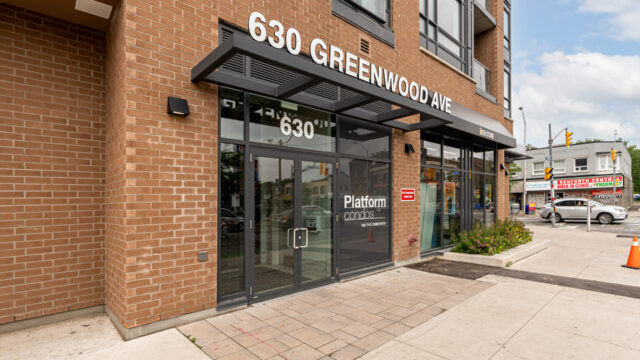 Location is everything & Platform Condo’s has it! Steps from greenwood subway station & all the eclectic shops & restaurants of the Danforth plus a quick stroll to Monarch Park, it doesn’t get much more convenient than this! 824 Sq ft corner unit with unique floor plan that is not cookie cutter by any means. Both sizable bedrms at opposing ends for maximum privacy. The primary suite contains full W/I closet plus 3 piece en-suite. The living area is filled with natural light & feels loft like with exposed support column & can still accommodate comfortably sized furniture. More that 20k in upgrades spent including appliances, flooring, doors & more! The den offers a great work from home space that is removed from the main living quarters. You will appreciate the roof top amenities complete with amazing views, outdoor gas fire pit, gas BBQ plus eating area, exercise room, pool table & additional kitchen in the party meeting area! Convenient owned parking across from elevator top it off!