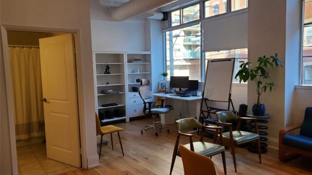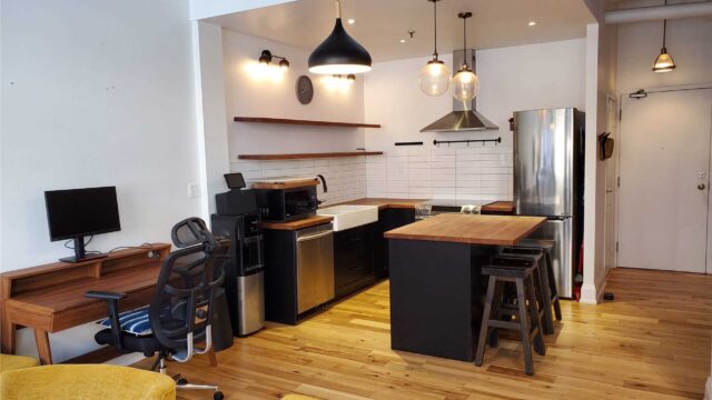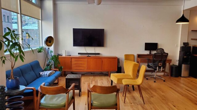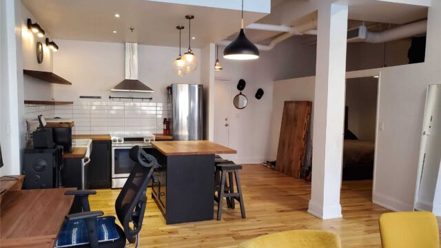 Rarely Available Updated Sun-Filled 1 Bed Plus Den. 884 Sq Ft Of Authentic Factory Conversion Living W/ Exposed Ductwork, Soaring Ceilings, Hardwood Floors, Large Windows, Kitchen W/ Breakfast Bar & Butcher Block Countertops. Plenty Of Storage, Pantry/Walk-In Closet/Laundry Room, Surface Parking. A Quick Walk To St Lawrence Market, Shops, Restaurants, Yonge St, Financial District & Subway. You Won’t Be Disappointed!