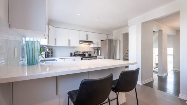 Located on a private Tree Lined dead end road! Over 1800 sq ft of sun filled livable space. Feats incl: Soaring 12 foot ceiling in LR, updated flooring throughout, renovated eat-in kitchen feat quartz counters, undermount sink & SS appl. 3 updated baths. Very functional for families & entertaining with large DR & glass rails overlooking the great room. W/O to Private Back Terrace Feat Gas BBQ Hookup, B/I Garage wired for electric vehicle charging. Electrical Panel & A/C replaced in 2022. Close to schools, hwy, public transit & more!