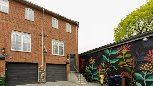 Rarely Offered leslieville townhome located on a private dead end road off Coxwell Avenue near Gerrard! Quiet and private. Approximately 1869 square feet including basement. Feat: high flat ceilings, open concept main floor, Gas FP, large eat in kitchen w/gas stove, Principle bed with 4-piece en-suite, finished lower level with 10′ ceilings & walk out, 2nd kitchens for in law or Nanny, 2 laundry rooms, 2 skylights, W/O to deck, B/I Garage with access to house. Steps to transit, shops & restaurants +++ This beauty won’t last long!